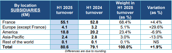 The H1 2025 turnover up slightly. The Group posts turnover at €80.6M, up by 1.9% and by 1.7% at constant exchange rate. The Q2 turnover is stable at -0.7% at constants exchange rate and perimeter.