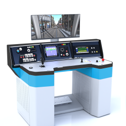 Cette console de cabine à l'échelle 1:1 est équipée de commandes et d'écrans d'affichage DMI, ainsi que d'un siège de conducteur, pour une expérience réaliste et immersive. Profitez d'une vision périphérique immersive haute résolution qui vous plonge au cœur de l'action.