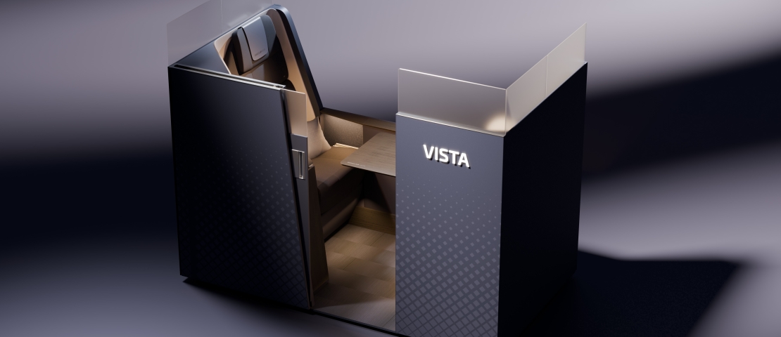 Avec VISTA, SOGECLAIR propose un démonstrateur de sa vision de la cabine premium, incarnée dans un environnement de type classe affaires, afin de mettre en scène les fonctionnalités et points de contact essentiels de l’expérience passager.
