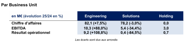 Les investissements réalisés au cours de l’année 2025 sur la BU Solutions permettent d’envisager une amélioration de la performance opérationnelle sur l’année 2026.