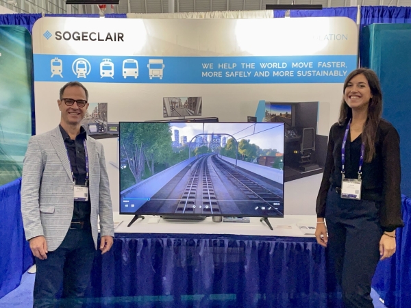 Paolo Paoletta et Laura Aymerich ont accueilli les visiteurs pour montrer comment la simulation soutient la formation des conducteurs, la sécurité opérationnelle et la gestion de la formation, en utilisant des vidéos de démonstration comme point de départ pour les échanges.